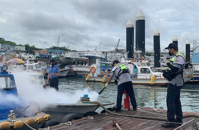 합동훈련은 항내 밀집·계류된 선박에 모의 화재 상황을 부여하고 ▲화재신고 접수 및 상황전파 ▲소화기 이용 초기 진화 ▲인근 선박 분리 및 이동 ▲선박 화재 진압 ▲훈련 강평 순으로 진행됐다.