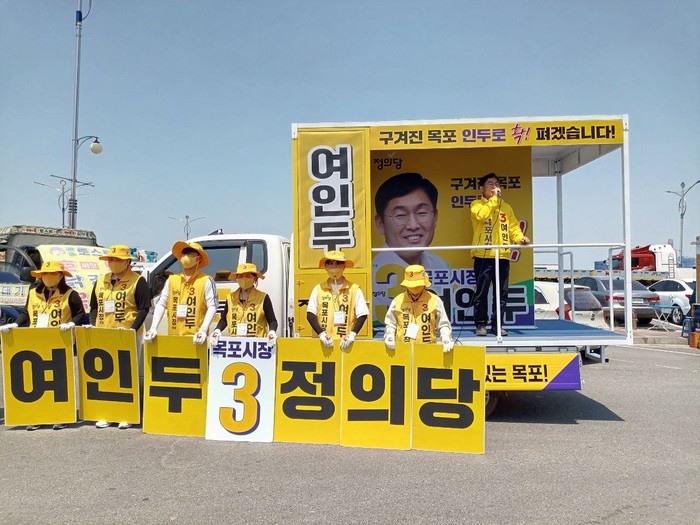 | ▲정의당 여인두 목포시장 후보 유세 모습(사진=여 후보 측) |