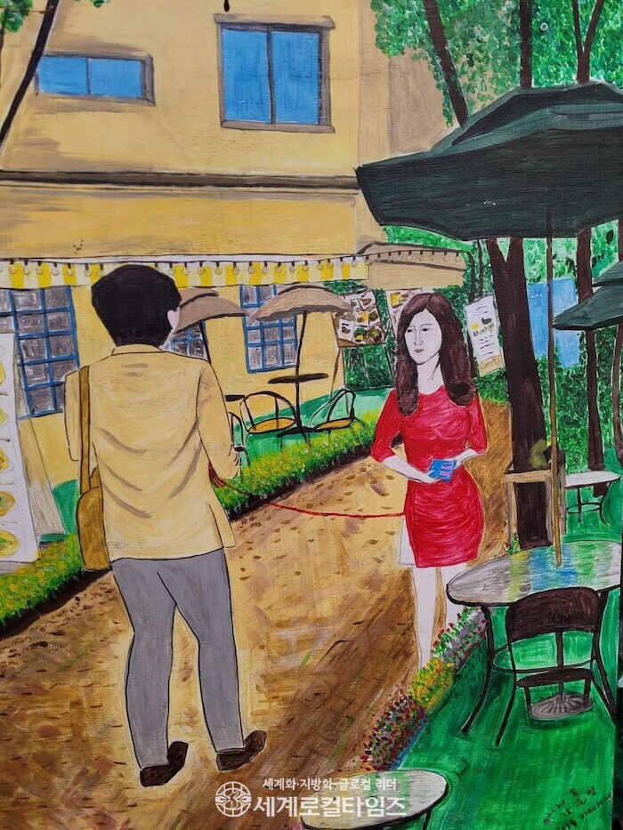 | ▲ '보정동 카페문화의 거리' 내 드라마 '신사의품격' 패러디 작품 (사진=이지안 기자) |