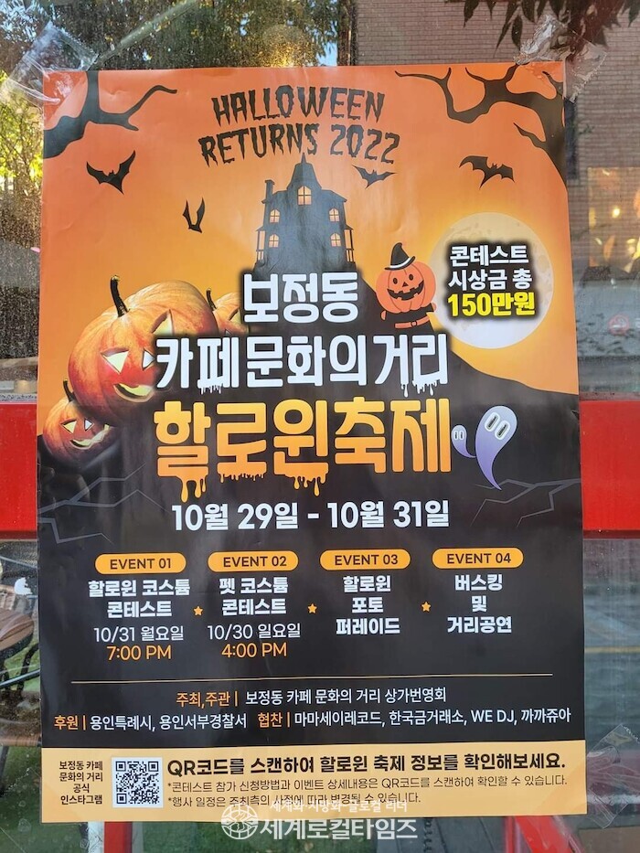 올해도 보정동카페문화의거리 상가번영회가 주최하고 주관하며 용인특례시와 용인서부경찰서에서 후원하는 ‘보정동카페문화의거리 할로윈축제 2022’를 연다.