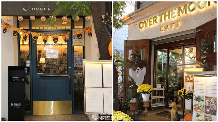 | ▲ 반려견 동반이 가능한 레스토랑 문스(좌), 브런치카페 오버더문(우). (사진=이지안 기자) |