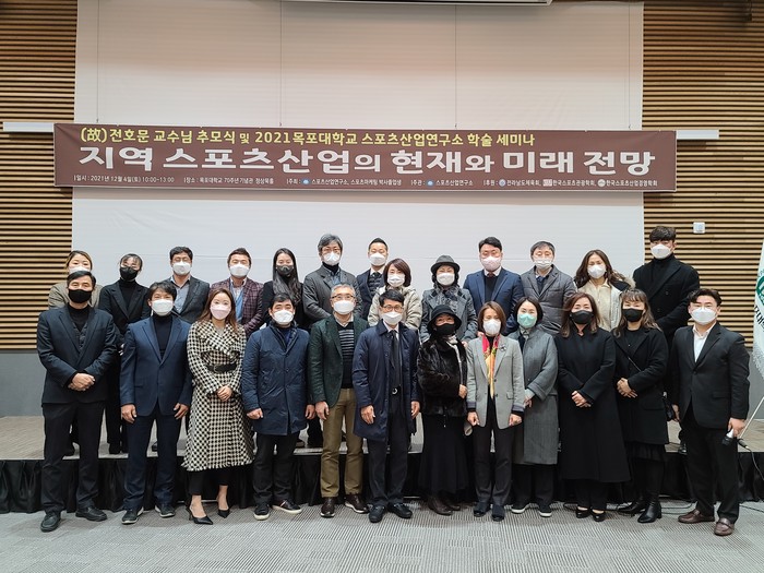 [세계로컬타임즈 김명진 기자] 목포대학교 스포츠산업연구소와 스포츠마케팅 박사졸업생들이 4일 목포대학교 70주년 기념관 정상묵홀에서 고 전호문 목포대학교 교수 추모세미나를 개최했다.