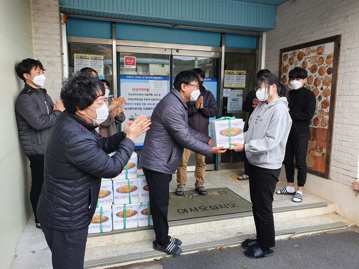 | ▲학생자치회 회장단 김치기증(사진=보성교육지원청) |