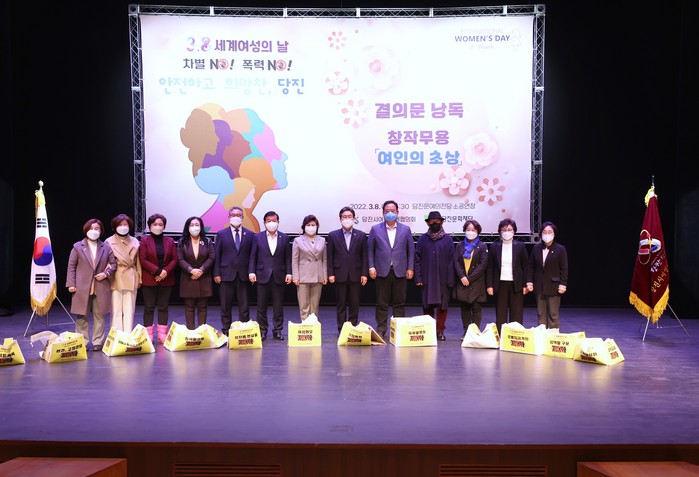이날 행사에는 김홍장 당진시장 비롯해 어기구 국회위원, 김명선 충남도의회 의장, 최창용 당진시의회 의장 등이 참석한 가운데 여성 헌장 낭독 및 여성 인권을 강조하는 문화공연 등이 진행돼 행사의 의미를 더했다.