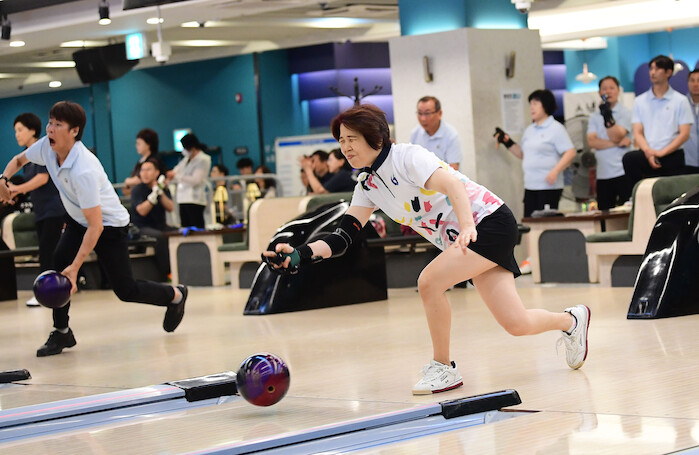 | ▲ 경기도어울림체육대회에 참가한 선수가 볼링공을 힘차게 던지고 있다. [사진=경기도장애인체육회] |
