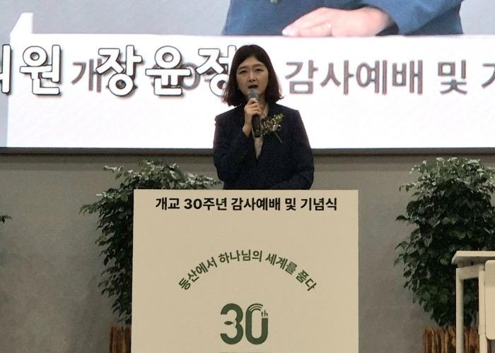 장윤정 의원은 축사를 통해 “안산동산고는 지난 30년간 기독교 정신과 지혜를 바탕으로 청소년들에게 진리와 인성, 사랑을 전해온 소중한 배움의 터전”이라며, “오늘에 이르기까지 설립자 김인중 원로목사님, 김성겸 이사장님, 문승용 교장선생님을 비롯한 모든 교육가족의 헌신이 있었기에 가능한 일이었다”고 강조했다.