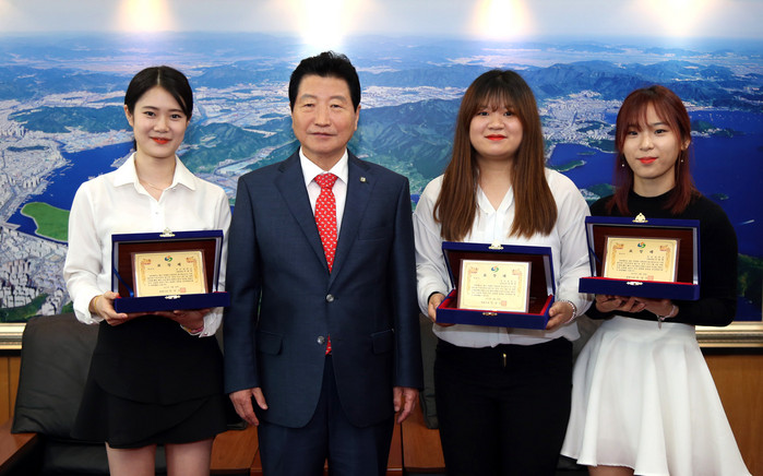 24일 경남 창원시에 따르면 경남대 재학 중인 서유진, 이유정, 양희정 등 3명의 여대생들에게 창원시장 표창을 전수했다.