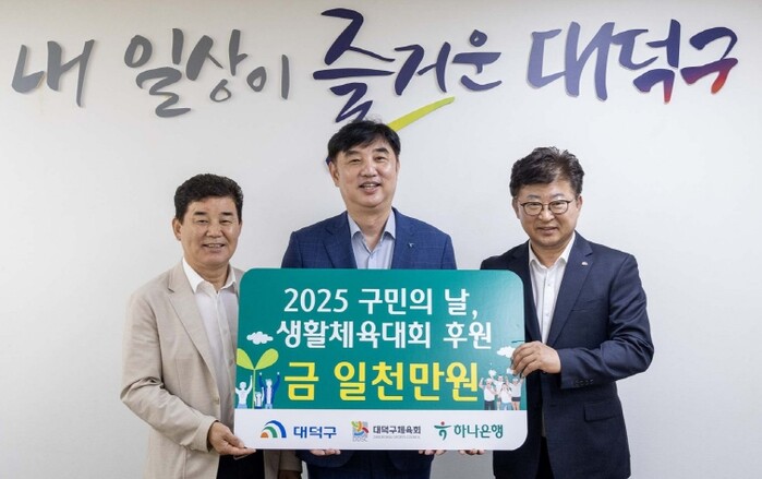 최충규 대덕구청장은 “하나은행의 후원으로 대덕구민의 날과 대덕구민 체육대회 두 행사가 더욱 풍성하고 의미 있게 치러질 것”이라며 “앞으로도 구민 모두가 즐길 수 있는 화합의 장을 만들어 가는 데 최선을 다하겠다”고 말했다.