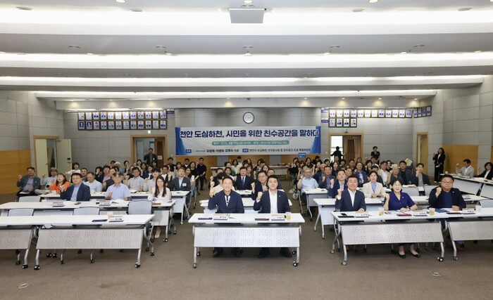 [세계로컬타임즈] 천안시의회는 9월 19일 오후 2시 천안시청 대회의실에서 '천안 도심하천, 시민을 위한 친수공간을 말하다' 정책토론회를 열었다. 이번 토론회는 도심하천을 단순한 치수·방재 기능을 넘어, 시민이 안전하게 즐길 수 있는 친수공간으로 발전시키기 위한 정책 방안을 모색하고자 마련됐다.