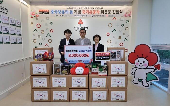 한편, 타이어뱅크가 준비한 물품은 세종시와 충남동부보훈지청에서 관리 중인 국가유공자가정에 지급될 예정이며 기부금은 보훈유공자 문화 체험 등 복지 프로그램 운영비로 활용될 예정이다.