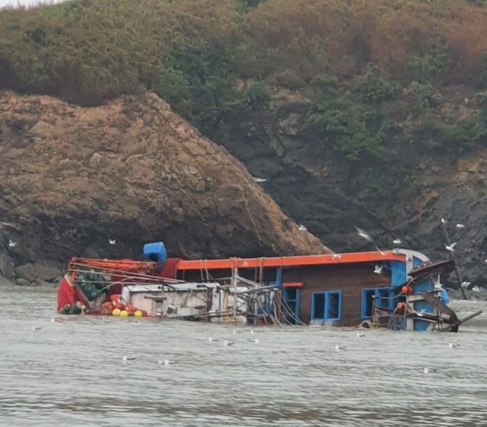 24일 목포해양경찰서(서장 이종욱)에 따르면 지난 23일 오후 5시 32분께 신안군 임자도 서쪽 1.1km 인근 해상에서 연안개량안강망 어선 A호(7.93톤, 승선원 5명)가 암초에 좌초돼 침수 중이라는 신고가 접수됐다.