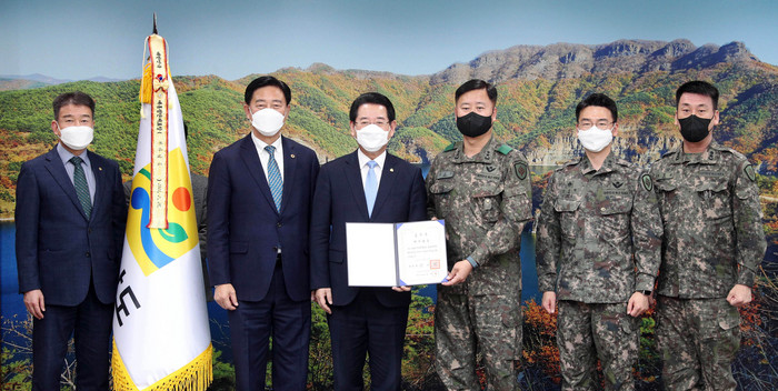 표창장 전수식은 24일 도청 VIP실에서 이뤄졌다. 광주.전남 향토방위를 책임지는 육군제31보병사단장(소장 최순건)이 전남도에 전달했다.