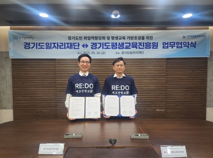 협약식에서 오후석 경기도평생교육진흥원장은 재도전 정신을 상징하는 ‘리두(RE:DO)’ 티셔츠를 두 기관에 직접 전달하며 “공공기관이 함께 힘을 모아 실패를 딛고 다시 일어설 수 있는 도전 생태계를 만들어가자”고 강조했다.