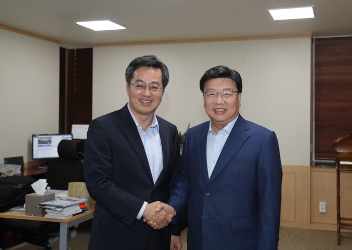 이에 대해 김동연 기획재정부장관은 일자리 창출과 관련된 사업과 대선공약 관심사업이 차질없이 추진되도록 지원하겠다고 화답했다.