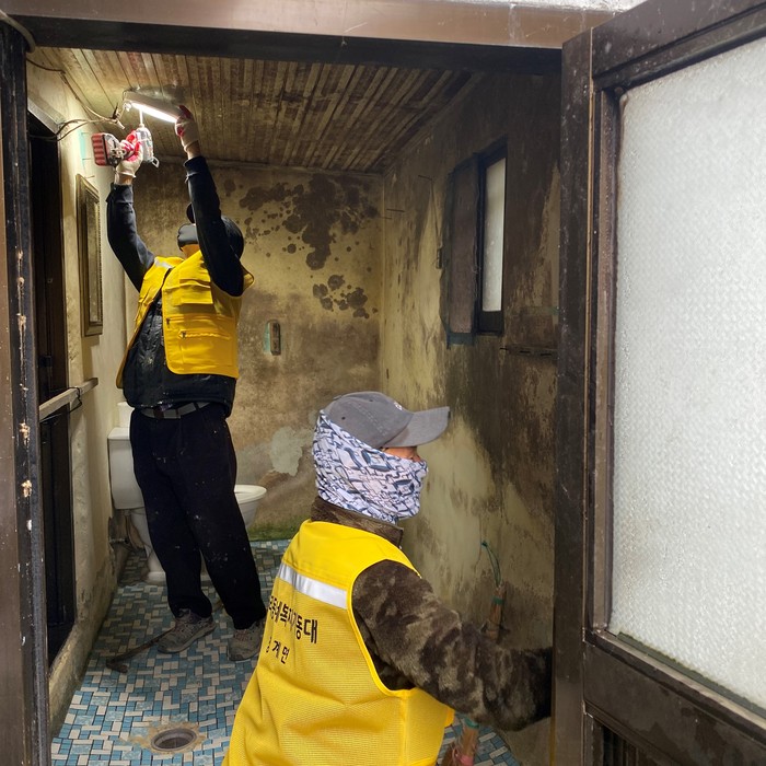 대상 세대는 각각 정신장애인 한부모 세대와 초등생 손자를 돌보는 독거노인세대로 노후된 욕실이 악취와 곰팡이로 뒤덮여 위생상태가 심각하고 세면대도 없이 수리가 시급한 상태였다.