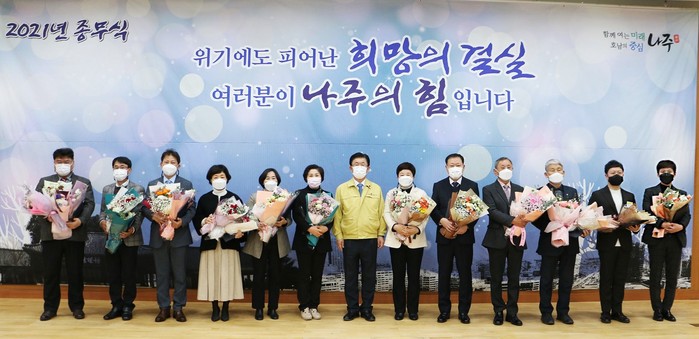 나주시는 31일 청사 대회의실에서 강인규 시장, 부시장 및 국·소·부서장, 유공표창 시민 등 90여명이 참석한 가운데 ‘2021년 종무식’을 개최했다고 밝혔다.