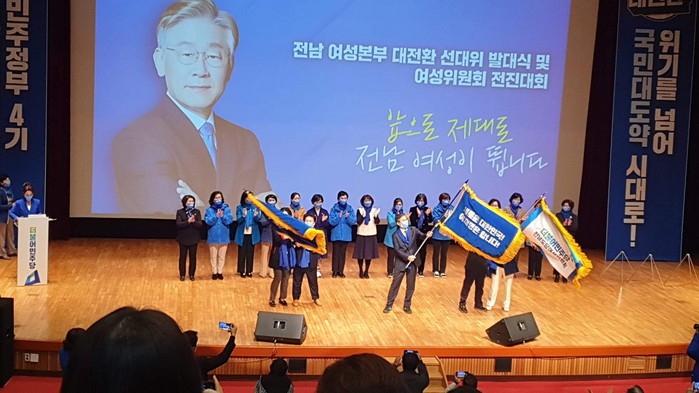 [세계로컬타임즈 김명진 기자] 더불어민주당 대한민국 대전환 전남여성본부선대위는 7일 오후 순천대 70주년 기념관에서 ‘전남여성본부 선대위 발대식 및 여성위원회 전진대회’를 열고 이재명 후보의 승리를 위해 앞장설 것을 결의했다.