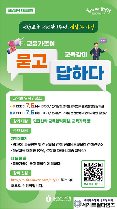 한편 ‘전남교육 대토론회’참여 방법과 자세한 행사 내용과 관련해서는 전남교육청 누리집과 SNS에서 확인할 수 있다.