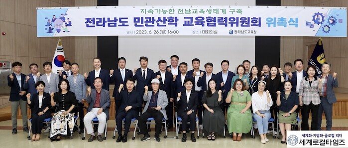 [세계로컬타임즈 김명진 기자] 지속가능한 전남교육생태계 만들기에 힘을 쏟는 ‘민관산학 교육협력위원회’가 위촉식을 열고 활동을 시작한다.