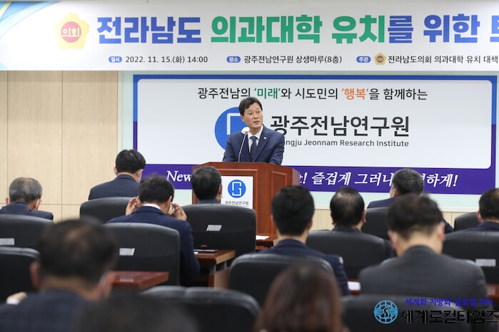 [세계로컬타임즈 김명진 기자] 서동욱 전라남도의회 의장은 15일 나주시에 소재한 광주전남연구원상생마루에서 열린 ‘전라남도 의과대학 유치를 위한 토론회’에 참석해 “도민 생명과 직결되는 의대를 반드시 유치하겠다”고 밝혔다.
