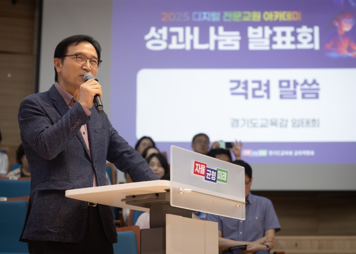 임태희 교육감은 특강에서 ‘콘텐츠 프로슈머로 성장하는 경기 교사 역량’을 주제로 디지털 시대 교원의 역할과 비전을 제시했다. 이어 ▲경기온라인학교 ▲하이러닝 ▲디지털 시민교육 ▲인공지능(AI) 기반 서‧논술형 평가 ▲하이코칭 등 5개 정책실행연구회가 중간 성과를 발표했다.