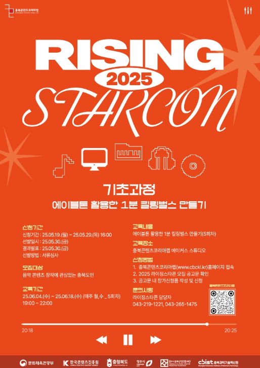 충북 권역에서 유일하게 비트메이킹을 배울 수 있는 이번 과정은 지역 뮤지션의 꿈을 발굴·성장시켜온 충북콘텐츠코리아랩의 라이징스타콘 일환으로 진행된다.