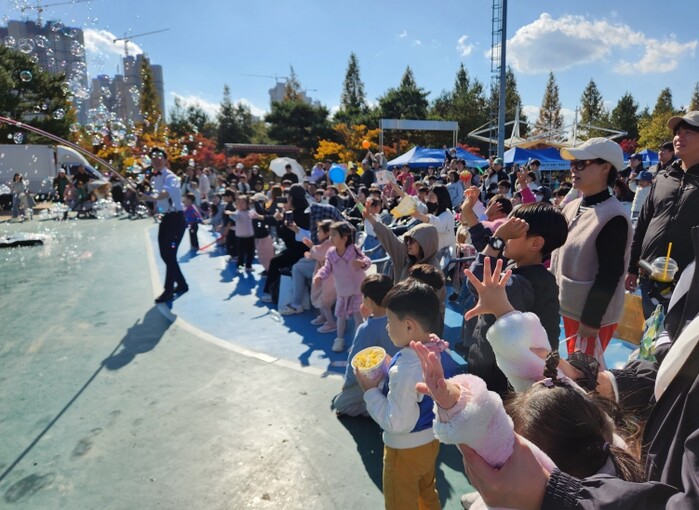 기존 마술·버블 공연에 더해 디제잉과 랜덤플레이댄스 등 참여형 공연을 총 7회 운영했으며, 봄·여름철 물총놀이(2회), 가을철 연날리기(2회) 등 계절 특성을 반영한 프로그램으로 회차별 현장 분위기를 다채롭게 만들었다.