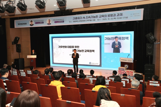 [세계로컬타임즈] 충청북도교육청은 23일, 교육문화원 다목적홀에서 기후위기 속 지속가능한 교육의 방향과 과제를 주제로 2025. 충북국제교육포럼을 개최했다.