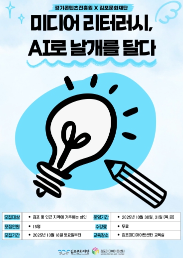 이번 교육은 급변하는 미디어 환경과 생성형 인공지능(AI) 기술의 확산에 대응하기 위해 기획됐으며, 김포 시민들이 AI 리터러시의 개념을 이해하고 다양한 AI 툴을 실질적으로 활용할 수 있는 능력을 키우는 데 목적을 두고 있다. 더불어 디지털 윤리와 안전에 대한 인식 제고도 함께 다룰 예정이다.