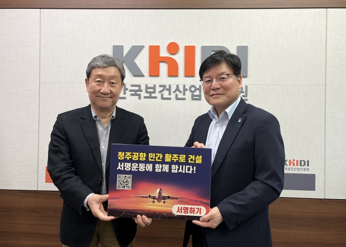 특히 최복수 청장은 이 자리에서 충청북도가 추진 중인 '청주공항 민간 활주로 건설을 위한 100만 서명운동'에 대해 설명하고, 한국보건산업진흥원의 적극적인 관심과 참여를 요청했다.