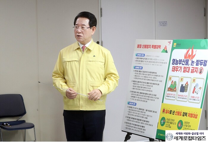 [세계로컬타임즈 김명진 기자] 김영록 전라남도지사는 최근 크고 작은 산불이 연일 발생함에 따라 9일 산불대응 도민 특별담화문을 발표, 산림과 그 인접지에서의 논.밭두렁 태우기 금지 등 예방수칙과 신고요령을 반드시 지켜줄 것을 당부했다.