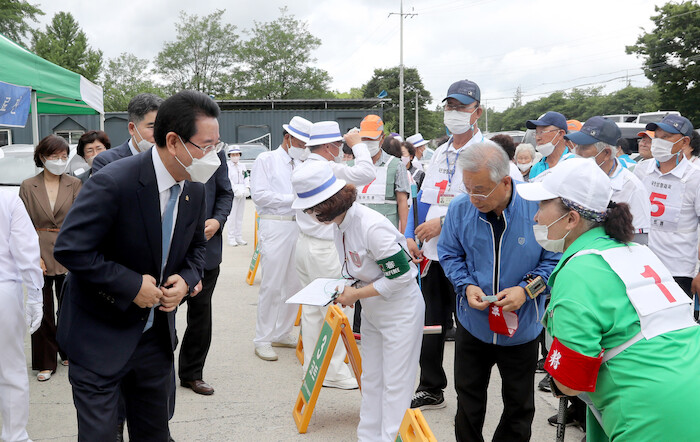 지난 2년간 코로나19로 어르신의 감염 방지를 위해 중단했다가 올해 야외에서 처음으로 열렸다. 노인 3대 스포츠는 게이트볼과 그라운드골프, 한궁이다.