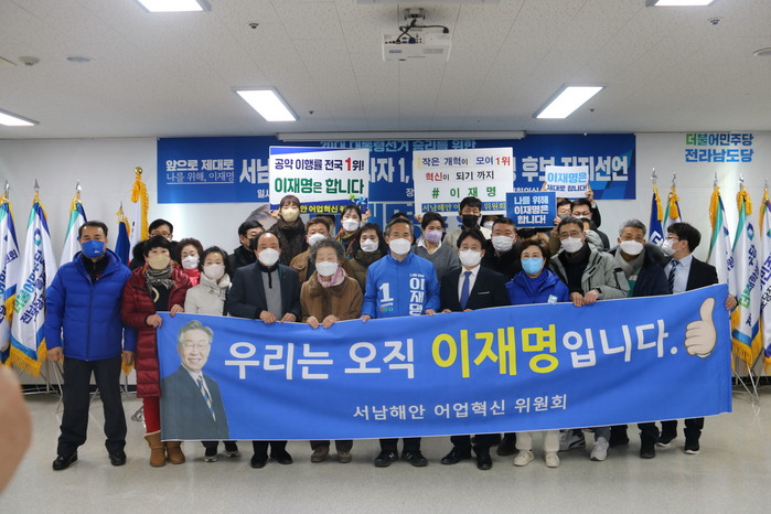 이들은 23일 더불어민주당 전남도당에서 회원 40여명이 참석한 가운데 열린 선언식에서 “서남해안 어업인들은 중앙과 지방의 균형발전, 도시와 농어촌의 상생발전을 실현할 수 있는 위기 극복의 실천가인 이재명 후보를 지지한다”고 밝혔다.