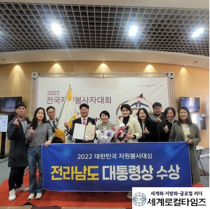 [세계로컬타임즈 김명진 기자] 전라남도는 5일 행정안전부의 2022년 전국자원봉사자대회에서 전담인력 확충 등 인프라 구축으로 민간주도 자원봉사 문화 정착에 기여한 공로로 대한민국자원봉사대상 대통령표창을 받았다고 밝혔다.