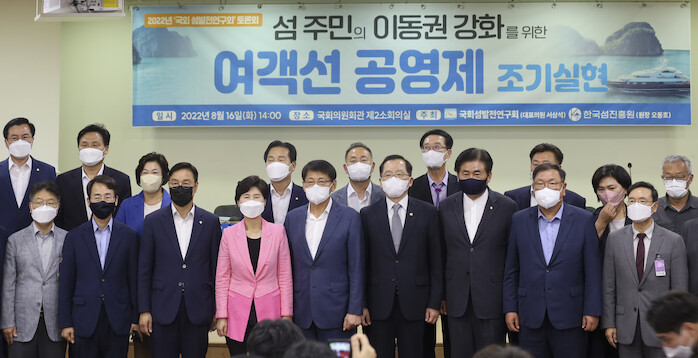 [세계로컬타임즈 강석운 기자] 국회 섬발전연구회는 한국섬진흥원과 공동으로 16일 오후 국회 의원회관 제2소회의실에서 “섬 주민의 이동권 강화를 위한 여객선 공영제 조기 실현”을 주제로 토론회를 개최했다.