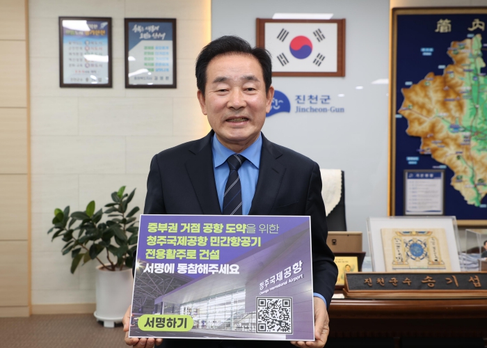 [세계로컬타임즈] 충북 중부내륙 산업·물류의 중심지인 진천군이 청주공항 민간전용 활주로 건설을 촉구하는 100만 서명운동에 동참했다.