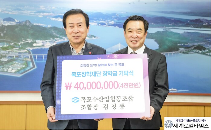 [세계로컬타임즈 김명진 기자] 목포수협이 지난 26일 재단법인 목포장학재단(이사장 박홍률 목포시장)에 장학기금 4천만원을 기탁했다.