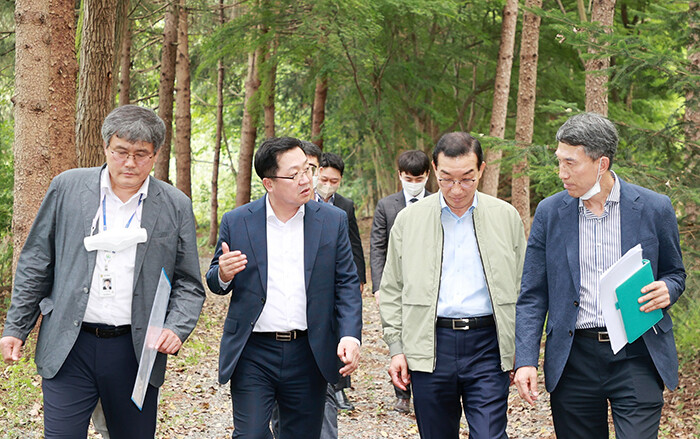 [세계로컬타임즈 민순혜 기자] 이장우 대전시장은 16일 오후 김광신 중구청장, 박영철 공원녹지과장, 장병서 공원관리사업소장 등과 함께 자연휴양림, 숲길 등 산림휴양시설 조성 대상지에 대한 현장방문을 실시했다.