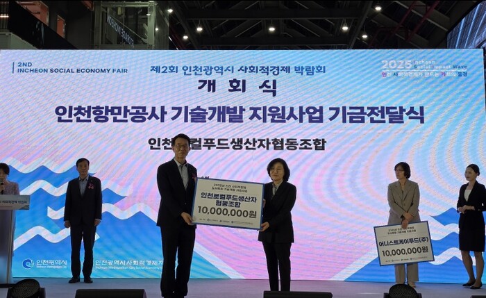 이번 기금수여식은 ‘2025년 인천 사회적경제 도서특화 기술개발 지원사업’의 일환으로 마련됐으며, 인천지역 사회적경제기업 2개사가 선정되어 기업당 1천만 원씩 총 2천만 원의 기술개발 지원기금이 수여됐다.