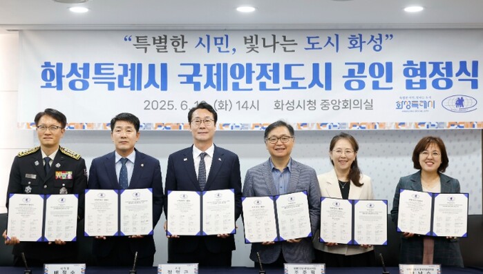 협정식에는 정명근 화성특례시장, 배정수 화성특례시의회 의장, 조준필·박남수 국제안전도시공인센터장, 김인숙 화성오산교육지원청 교육장, 고문수 화성소방서장 등 그간 국제안전도시 인증에 협력해 온 주요 기관장이 참석했다.