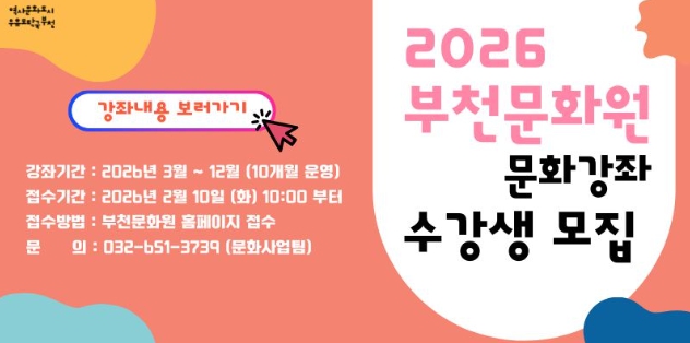 부천문화원(권순호 원장)은 “60년간 축적해온 지역문화의 자산 위에 시대의 흐름을 반영한 새로운 콘텐츠를 더해 시민 중심의 문화교육을 실현하고자 한다”며 “문화예술이 특별한 경험이 아니라 일상 속 선택이 될 수 있도록 지속적으로 프로그램을 발전시켜 나가겠다”고 밝혔다.
