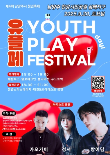 [세계로컬타임즈] 남양주시는 오는 20일 한강시민공원 삼패지구에서 청년의 날을 기념해 ‘유플페(Youth Play Festival)’ 청년축제를 개최한다.