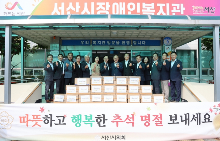 이날 조동식 의장을 비롯한 의원들은 서산효담요양원, 서산시장애인복지관 2개소를 직접 찾아가 기관이 요청한 생필품과 간식류 등 위문품을 전달하고 시설 종사자와 입소자들에게 따뜻한 명절 인사를 전했다.