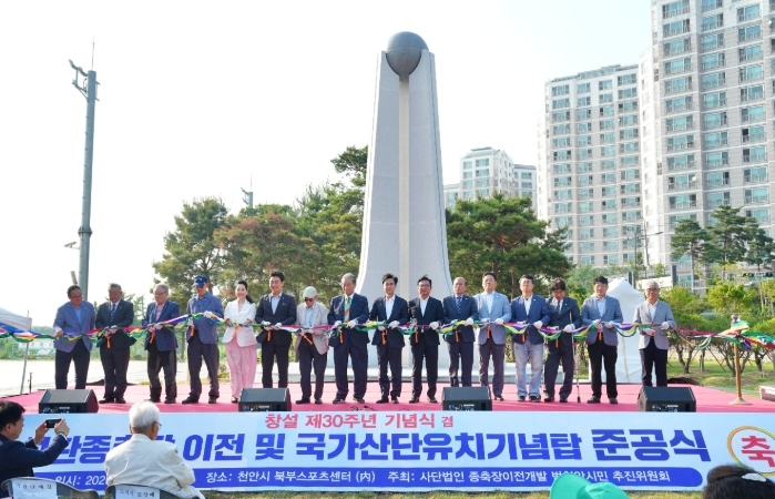 천안시는 종축장이전개발범천안시민추진위원회 천안시북부스포츠센터에서 축산자원개발부 이전 및 국가산단 유치기념탑 제막식을 거행했다고 9일 밝혔다.