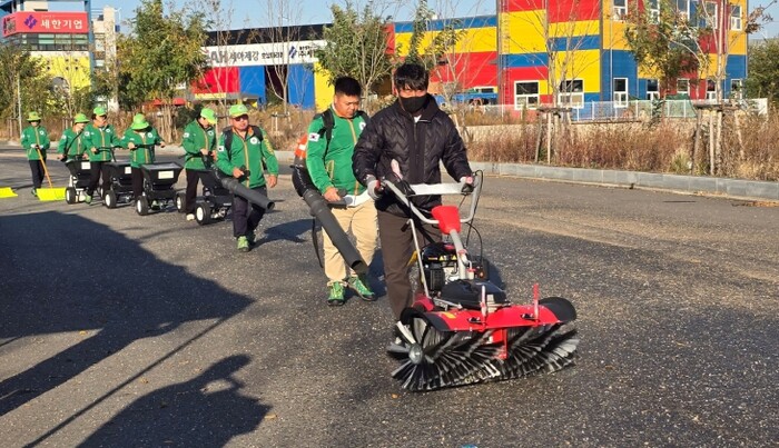 또 브러시, 블로워, 개인형 살포기 등 이면도로 제설용 소형장비 시연과 자율방재단의 실습을 통해 민간 제설인력의 후속제설 대책도 함께 점검했다.