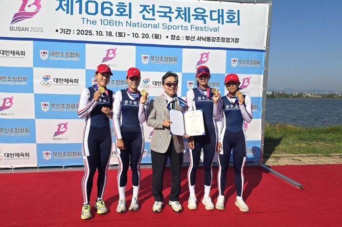 20일 서낙동 조정경기장에서 열린 조정 18세이하부 쿼드러플스컬 경기에 참가한 광주체고 조정팀(김지선3, 노효림1, 배지영1, 천지민1)이 7분9초69를 기록하며 우승을 차지했다. 104회 전국체전부터 이 종목에서 우승을 차지한 광주체고는 3연패 대기록을 달성했다.