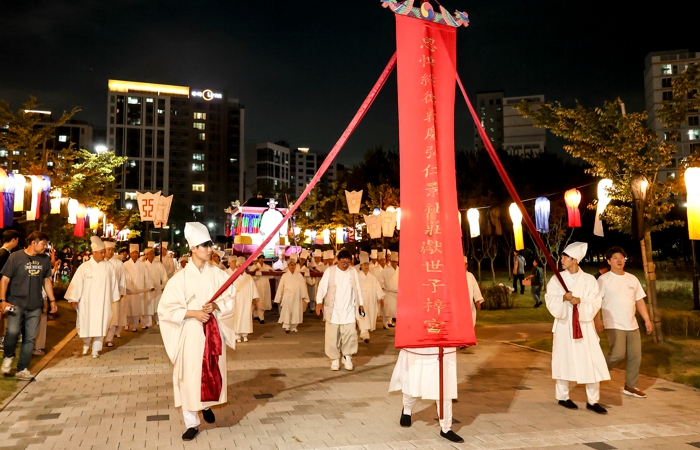이어, 횃불로 죽산마에 불을 붙이는 ‘죽산마(竹散馬) 소지 퍼포먼스’가 웅장하게 펼쳐져 시민들의 이목을 끌었다. 여기에는 왕의 장례식에서 영혼을 천상까지 극진히 봉송한다는 의미가 담겨있다.