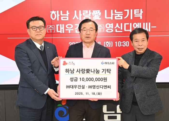 이현재 하남시장은“어려운 시기에 따뜻한 마음을 나눠주시는 ㈜대우건설, ㈜영신디엔씨에 깊이 감사드리며 기탁해 주신 성금은 따뜻한 겨울이 될 수 있도록 도움이 필요한 저소득 가구에게 소중히 전달하겠다”고 전했다.
