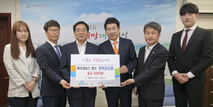 [세계로컬신문 라안일 기자] 메르세데스-벤츠 대전전시장이 20일 대덕구에 저소득 아동을 위해 써달라며 장학금 500만원을 기탁했다.