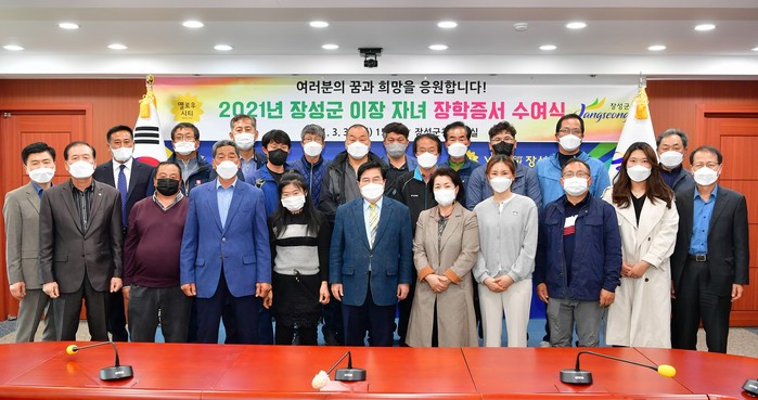 장성군은 지난해 2021년 고등학교 무상교육 전면 확대와 국민권익위원회의 이장자녀 장학금제도 공정성개선 권고에 따라 관련 조례를 신속히 개정하고, 개정된 조례와 평가 기준에 의해 중학생 30만원, 고등학생 60만원, 대학생 200만원씩 총 20명에게 2900여만원을 이날 지급했다.